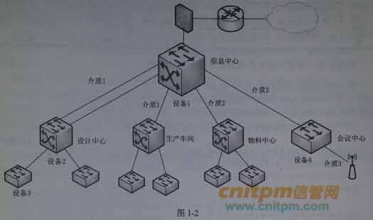根据公司网络需求分析,设计人员设计的网络拓扑结构如图1-2所示。
