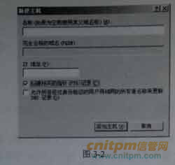DNS 服务器为WebServer1 配置域名记录时,在图3-2 所示的对话框中,添加的主机“名称”为(2)www,“lP 地址”是(3) 61.153.172.31 。采用同样的方法为Webserver2 配置域名记录。