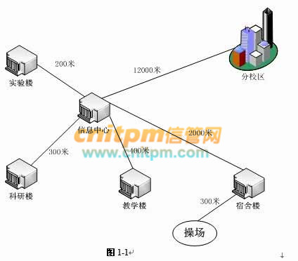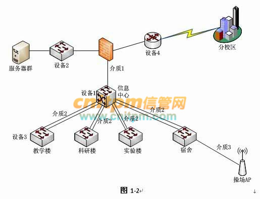 某学校计划部署园区网络,本部与分校区地理分布如图1-1所示。