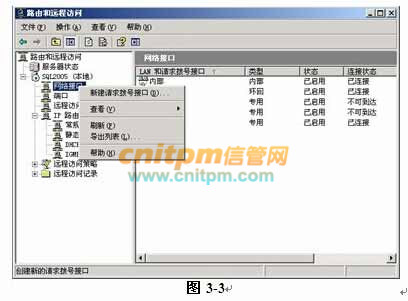 在Server1上开启路由和远程访问服务,出现如图3-3所示的窗口,在继续配置“网络接口”时,出现如图3-4所示的对话框,应该选择“(7)”,然后输入ADSL账号和密码完成连接建立过程。