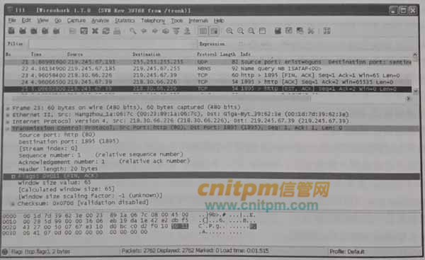 下图中第23条记录是某客户机收到的TCP报文,从结果中可以看出该客户机的IP地址为 (1) ,该TCP报文是 (2) 。