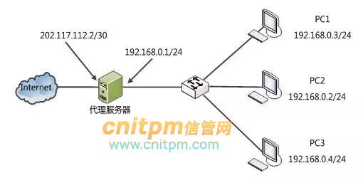 某单位局域网配置如下图所示,PC2发送到Internet上的报文源IP地址为 ( ) 。