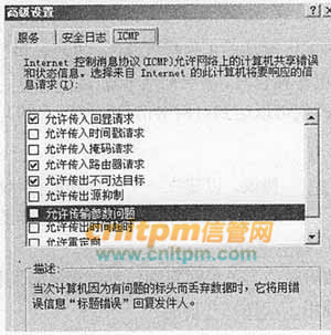 在下图中,若要拒绝外部设备PING服务器,在防火墙的ICMP配置界面上应该如何操作?
