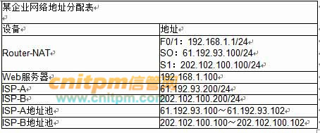 按照网络拓扑结构为该企业网络进行网络地址配置,地址分配如下表所示。