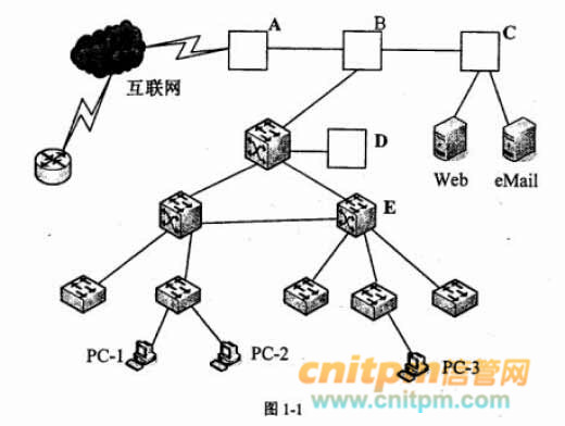 某企业网络拓扑如图1-1 所示,A~E 是网络设备的编号。