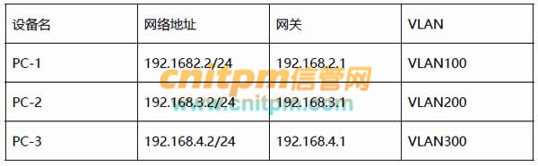 PC-1、PC-2、PC-3、网络设置如表1-2。
