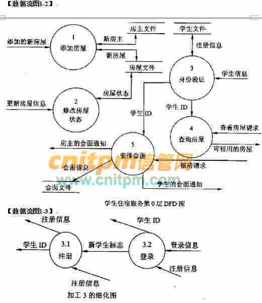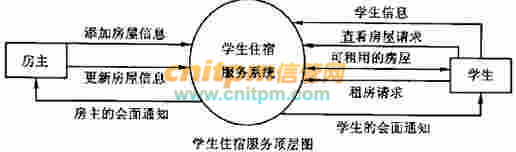 学生住宿服务系统的顶层图如图1-1所示;学生住宿服务系统的第0层DFD图如图 1-2所示,其中,加工3的细化图如图1-3所示。