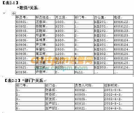 4.“职员”和“部门”的关系示例分别如表2-1和表2-2所示。