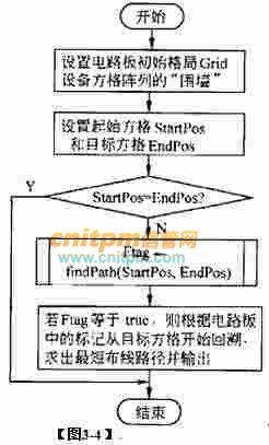 图3-3和图3-4所示的流程图即利用上述思路,在电路板方格阵列中进行标记,图【图3-3】
