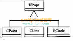 某绘图系统定义了一个抽象类IShape,现有三个类CPoint、CLine和CCircle,它们都具有IShape界面。相应的类图关系如图7-1所示。