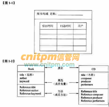 某公司的主要业务是出租图书和唱碟。由于业务需求,该公司委托软件开发公司A开发一套信息管理系统。该系统将记录所有的图书信息、唱碟信息、用户信息、用户租借信息等。A公司决定采用面向对象的分析和设计方法开发此系统。图1-1所示为某类图书或唱碟被借阅时应记录的信息,图1-2描述了系统定义的两个类Book和CD,分别表示图书和唱碟的信息。