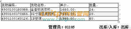 每个仓库可以存放多种货物,但同一种货物不能存放在不同的仓库中。每个仓库有多个管理员,但每个管理员只管理一个仓库。货物出库/入库时,由仓库管理员将货物的条码通过阅读器输入前端机中,货物数量的默认值为1,可以由管理员修改。前端机根据输入的货物信息,打印“出库/入库”清单。出库/入库单中同一种货物最多只出现一次,每份出库/入库单由流水号唯一标识。图2-2是一个出库单的实例。