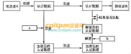 图3-2描述了发送和接收消息的过程,其中的认证过程使用了图3-1中的方法。图3—1中的方框a和方框b与图3-2中的方框a和方框b相同。