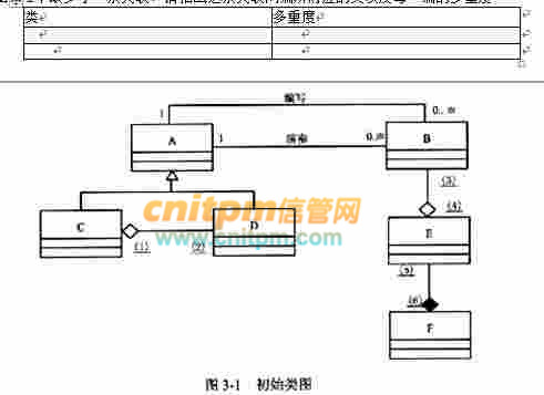 图3-1中缺少了一条关联,请指出这条关联两端所对应的类以及每一端的多重度。