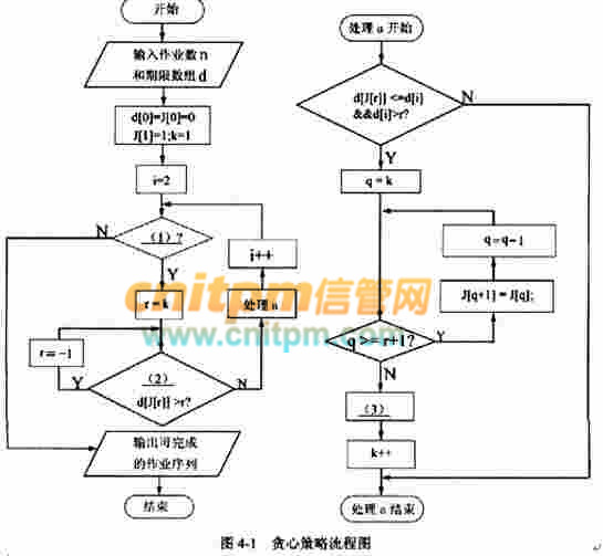 为获得较高的收益,采用贪心策略求解在期限之内完成的作业序列。图4*1是基于贪心策略求解该问题的流程图。