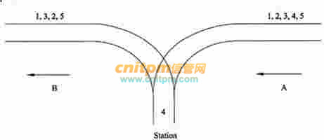 现有n(n<1000)节火车车厢,顺序编号为1,2,3,…,n,按编号连续依次从A方向的铁轨驶入,从B方向铁轨驶出,一旦车厢进入车站(Station)就不能再回到A方向的铁轨上:一旦车厢驶入B方向铁轨就不能再回到车站,如下图所示,其中Station为栈结构,初始为空且最多能停放1000节车厢。