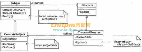 (1)设计模式允许一个对象在其状态改变时,通知依赖它的所有对象。该设计模式的类图如下图,其中, (2)在其状态发生改变时,向它的各个观察者发出通知。(1)A.命令(Command)B.责任链(Chain of Responsibility)C.观察者(Observer)D.迭代器(Iterator)(2)A.SubjectB.ConcreteSubjectC.ObserverD.ConcreteObserver