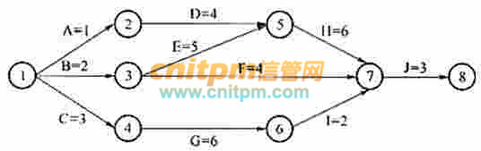 在进行进度安排时,PERT图不能清晰地描述(1),但可以给出哪些任务完成后才能开始另一些任务。某项目X包含任务A、B、……、J,其中PERT图如下所示(A=1表示任务A的持续时间是1天),则项目X的关键路径是(2)。(1)A.每个任务从何时开始B.每个任务到何时结束C.各任务之间的并行情况D.各任务之间的依赖关系(2)A.A-D-H-JB.B-E-H-JC.B-F-JD.C-G-I-J