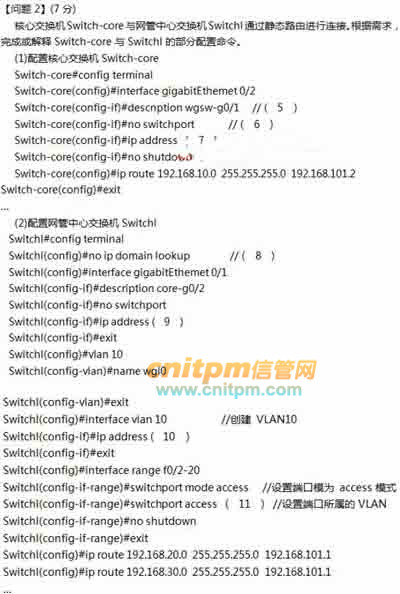 核心交换机Switch-core与网管中心交换机Switchl通过静志路由进行连接。根据需求