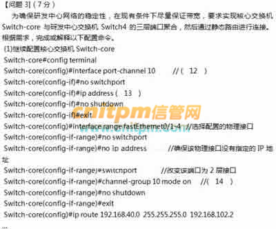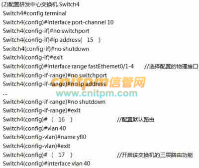 随著企业网络的不断发晨,研发中心的上网计算机数急剧增加,在高峰时段研发中心和核心变换机之间的网络流量非常大,在不对络进行大的升级改造的前提下,网管人员采用了以太信道(或端口聚合)技术来增加带宽,同时也起到了(1)和(2)的作用,保证了研发中心网络的稳定性和安全性。