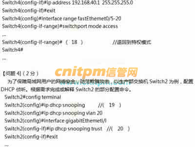 内部邮件服务器IP地址为192.168.100。253,MAC地址为01:A8:71:8C:9A:BB;内部文件服务器IP地址为192.168.100.252,MAC地址为01:15:71:8C:77:BC。公司内部网络分为4个网段.