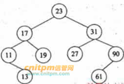 设有二叉排序树(或二叉查找树)如下图所示,建立该二叉树的关键码序列不可能是( )。A.23 31 17 19 11 27 13 90 61B.23 17 19 31 27 90 61 11 13C.23 17 27 19 31 13 11 90 61D.23 31 90 61 27 17 19 11 13