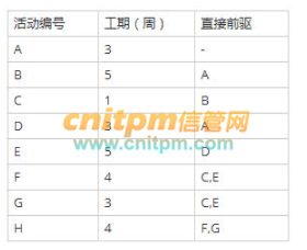 某项目包含的活动如下表所示,完成整个项目的最短时间为(1 )周。不能通过缩短活动(2)的工期,来缩短整个项目的完成时间。(1)A.16B.17C.18D.19(2)A.AB.BC.DD.F