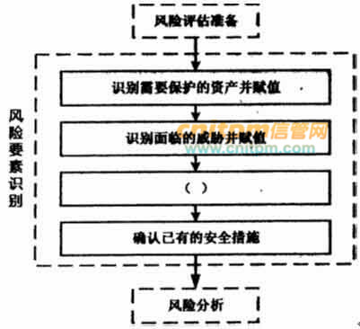 风险要素识别是风险评估实施过程中的一个重要步骤,小李将风险要素识别的主要过程使用图形来表示,如下图所示,请为图中空白框处选择一个最合适的选项( )。 A.识别面临的风险并赋值 B.识别存在的脆弱性并赋值 C.制定安全措施实施计划 D.检查安全措施有效性