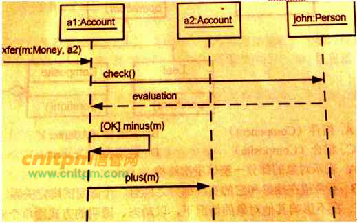 下图所示的 UML 序列图中,(1)表示返回消息,Account 应该实现的方法有(2)。(1)A.xferB.checkC.evaluationD.minus(2)A.xfer0B.xfen()、plus()和 minus()C.check()、plus()和 minus()D.xfar()、evaluation()、plus()和minus()