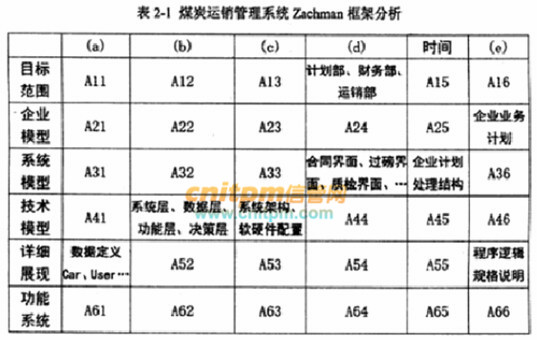 煤矿企业根据集团的工作计划制订本企业的业务计划,煤矿企业根据集团划拨指标和提供的原料生产煤炭,所生产的煤炭交由集团统一管理和销售给客户。软件公司采用Zachman框架对企业业务架构和业务过程进行分析,结果如表2-1所示。