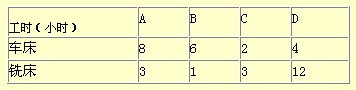 某车间需要用一台车床和一台铣床加工A、B、C、D四个零件。每个零件都需要先用车床加工,再用铣床加工。车床与铣床加工每个零件所需的工时(包括加工前的准备时间以及加工后的处理时间)如下表: