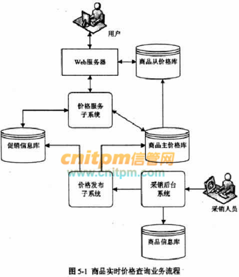 问题2: 商品实时价格查询是该系统一个重要的业务场景,其完整业务流程如图5-1所示。其中商品实时价格由采销人员在后台设置,包括基础价格与促销信息(例如直降、打折等);用户在前台商品详情页面请求实时价格;商品实时价格则由商品的基础价格与促销信息计算得出。