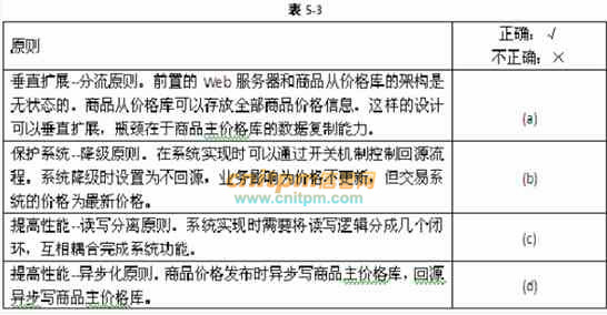 问题3: 在设计实现商品实时价格查询业务流程时,项目组的分析师王工向系统设计师和实现人员提出了一些原则,请分析并判断这些原则的正确性,将应填入表5-3中(a)~(d)处的解答写在答题纸的相应栏内。