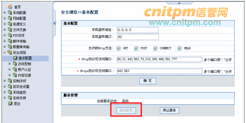 无论是透明访问还是普通访问,仅进入"安全浏览→基本配置"启动服务。如下图。
