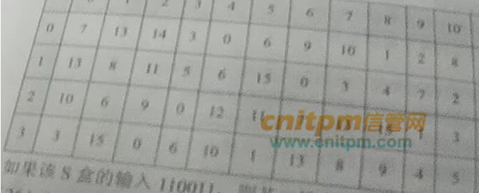已知DES算法的S盒如下:如果该S盒的输入110011,则其二进制输出为()A、0110B、1001C、0100D、0101