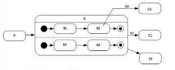 如下所示的 UML 状态图中,( )时,不一定会离开状态 B。
