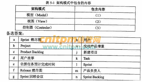 根据题干描述,本系统采用MVC架构模式,请从各选答案a~n中分别选出属于MVC架构模型中的模型(Model)、视图(View)和控制器(Controler)的相关内容描述填入表5-1的空(1)~(3)处。