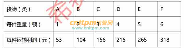 用一辆载重量为 10 吨的卡车装运某仓库中的货物(不用考虑装车时货物的大小),这些货物单件的重量和运输利润如下表。适当选择装运一些货物各若干件,就能获得最大总利润( )元。A.530B.534C.536D.538