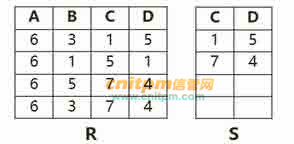 若关系R、S如下图所示,则关系R与S进行自然连接运算后的元组个数和属性列数分别为();关系代数表达式π1,4(σ3=6(R×S))与关系代数表达式()等价。(1)A.6和6B.4和6C.3和6D.3和4(2)A.πA,D(σC=D(R×S))B.πA,R,D(σS.C=R.D(R×S))C.πA,R,D(σR.C=S.D(R×S))D.πA,R,D(σS.C=S.D(R×S))