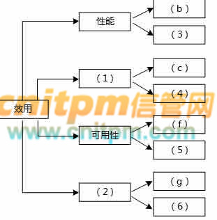 在架构评估过程中,质量属性效用树(utility tree)是对系统质量属性进行识别和优先级排序的重要工具。请给出合适的质量属性,填入图1-1中(1)、(2)空白处;并选择题干描述中的(a)~(o),将恰当的序号填入(3)~(6)空白处,完成该系统的效用树。