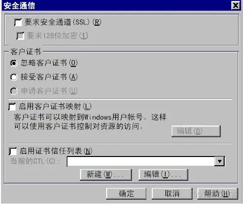 如果Web服务器管理员希望Web服务器对客户端证书进行强制认证,在图C2-3-2如何进行配置?