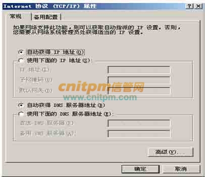 在Windows操作系统中,DHCp客户端“Internet协议(TCP/IP)属性”配置界面如图2-1所示。在此界面中,客户端应如何配置?