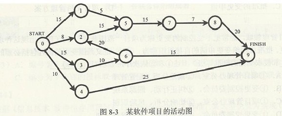 图8-3是一个软件项目的活动图,其中顶点表示项目里程碑,边表示包含的活动。边上的权重表示活动的持续时间(单位:天),则里程碑( )没有在关键路径上。