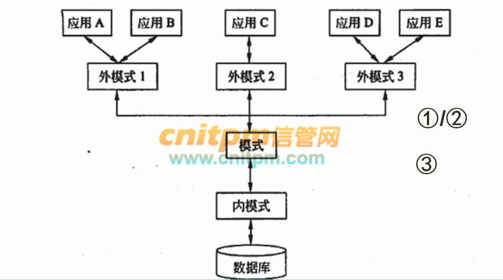 站在数据库管理系统的角度看,数据库系统一般采用三级模式结构,如下图所示。