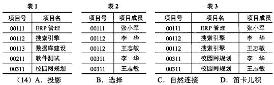 A.投影B.选择C.自然连接D.笛卡尔积