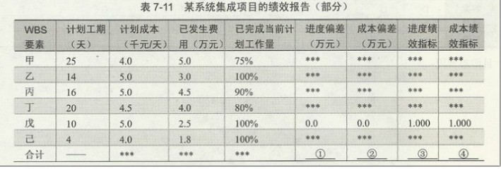 (2)请计算该项目在开工第5天末的进度偏差、成本偏差、进度绩效指标、成本绩效指标,分别填入表7-11中的①~④空缺处。并从进度和成本两方面评价项目的当前执行绩效情况。(6分)