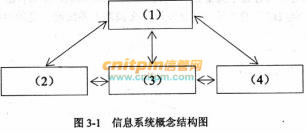 信息系统从概念上来看是由信息源、信息用户,信息处理器和信息管理者等四大部分组成,它们之间的关系可用图3-1表示。请在答题纸中,将信息源、信息用户、信息处理器和信息管理者分别填写在(1)~(4)的相应处。