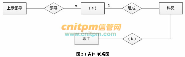 3)每个科室都有一名主管上级领导,上级领导信息主要包括编号、姓名、职务;