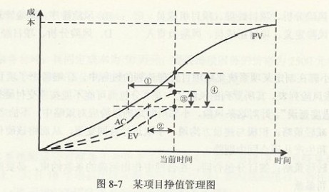挣值技术利用项目管理计划中的成本基准来评估项目绩效和与发生的相关偏差的量级。图8-7所示的某项目挣值管理图中标号所标示的区间依次应填写(1)。根据项目当前状态,项目经理下一步最可能采取的行动是(2)。