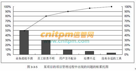 如图3-3-5 所示,给出了某项目的项目管理过程中出现的问题的帕累托图,其中B 类因素是()。